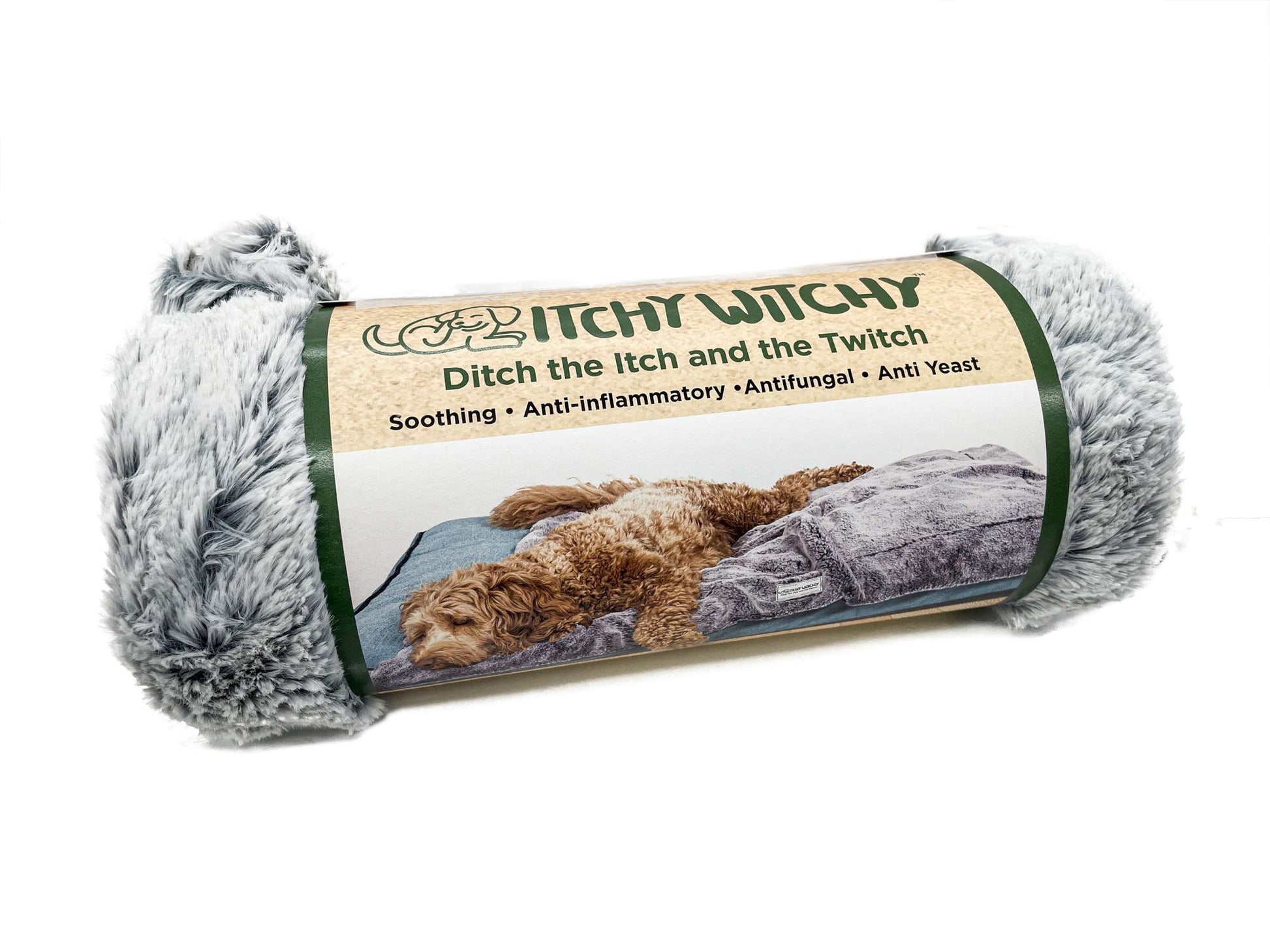 our furry friend is about to experience ultimate comfort and relief with the Itchy Witchy Blanket...a breakthrough blend of old school natural apothecary and high-tech delivery device in a soft and cozy blanket.